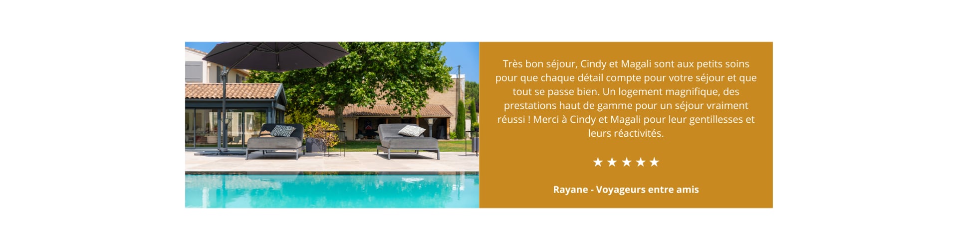 Offrez une expérience unique dans les Alpilles, le Luberon et le Pays Salonais : accueil personnalisé, services à l’arrivée, chef privé, bien-être et activités locales pour améliorer les avis et fidéliser vos clients.